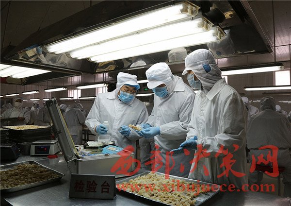 3月14日,衡水市食品和市場監(jiān)督管理局桃城區(qū)分局執(zhí)法人員在抽檢一家冷凍食品加工企業(yè)生產(chǎn)線上的食品。