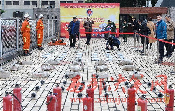 這是3月14日拍攝的2017年福州市假冒偽劣消防產(chǎn)品集中銷毀儀式現(xiàn)場。