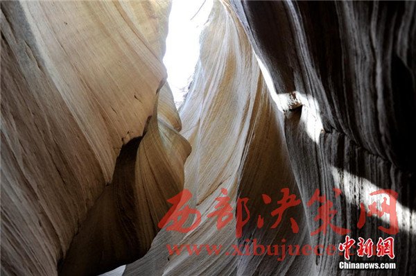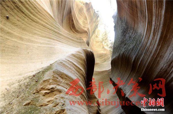 位于陜西省甘泉縣雨岔村的峽谷,是陜北黃土高原上的地質(zhì)奇觀,峽谷內(nèi)壁凹凸不平、線(xiàn)條流暢,走進(jìn)峽谷,峽壁上的線(xiàn)條如波浪從身邊劃過(guò),最窄的地方只有一個(gè)人側(cè)著身子方可過(guò)去,其迷人之處與美國(guó)羚羊峽谷相媲美。