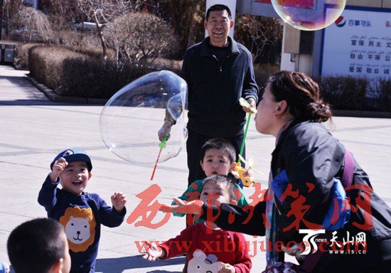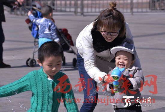 3月29日,烏魯木齊市天氣晴朗,天空一片湛藍(lán),很多市民都走出家門享受春天的陽(yáng)光,不少孩子在人民廣場(chǎng)上追逐、奔跑、吹泡泡、放風(fēng)箏,玩得不亦樂乎。當(dāng)日,烏魯木齊市最高氣溫達(dá)到14攝氏度,市民已經(jīng)脫下了厚厚的棉衣,穿上了春裝。
