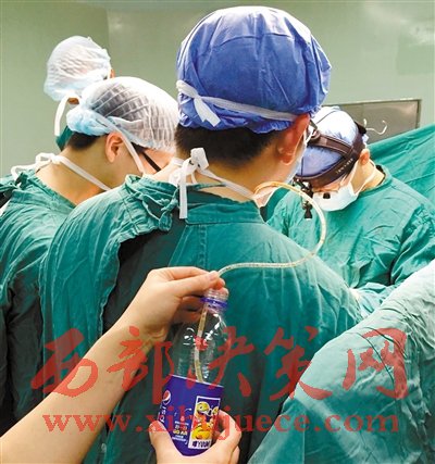記者通過四川省人民醫(yī)院了解到,這張照片拍攝于3月17日,當(dāng)時(shí)省人民醫(yī)院住院部手術(shù)室二手術(shù)室間正在進(jìn)行一臺(tái)Bentall+全主動(dòng)脈弓置換+降主象鼻支架置入+冠脈搭橋術(shù)。這次手術(shù)持續(xù)了12個(gè)小時(shí),從上午9點(diǎn)過開始,一直持續(xù)到晚上9點(diǎn)過結(jié)束。照片拍攝于下午5點(diǎn),當(dāng)時(shí)巡回護(hù)士正在通過無菌引流管,給一直未進(jìn)午餐的一助醫(yī)生喂可樂解渴。據(jù)了解,這樣的情況在心臟外科手術(shù)中很常見,也從一個(gè)側(cè)面說明了手術(shù)醫(yī)生不僅需要高精尖的專業(yè)技能、高強(qiáng)度的工作,還需要強(qiáng)壯的體魄!正是這些在封閉的手術(shù)間里全力以赴的醫(yī)護(hù)團(tuán)隊(duì),換來了一個(gè)個(gè)生命的奇跡。