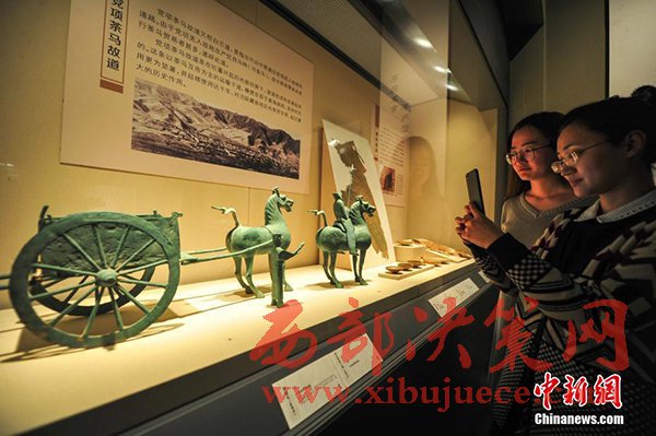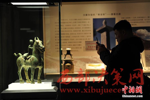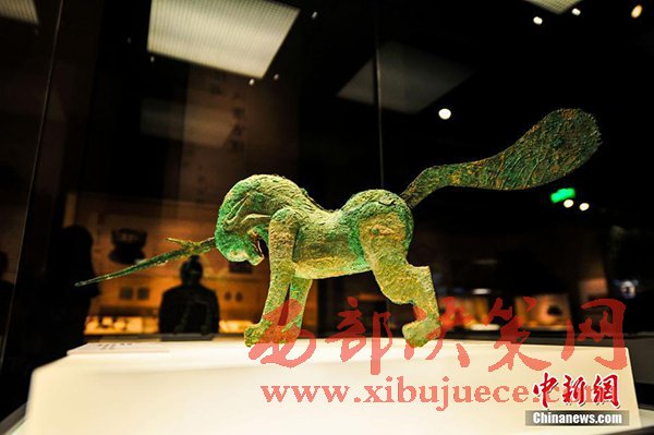 4月6日,遼寧沈陽展出的漢代青銅獨(dú)角獸,這件獨(dú)角獸出土于1956年的甘肅酒泉地區(qū)。“茶馬古道——西部八省區(qū)文物聯(lián)展”集合八省區(qū)12家博物館共計(jì)342件(組)文物,向觀眾展示“茶馬古道”這條世界上海拔最高的交通“生命線”,讓觀眾領(lǐng)略茶馬古道沿線的風(fēng)土人情。