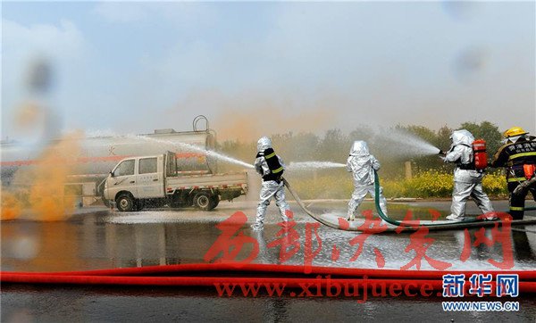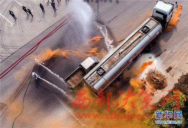 當日,山東省菏澤市消防、交通等部門為有效應對?;返缆愤\輸突發(fā)事件,提高應急救援和協(xié)調能力,聯(lián)合開展危化品運輸企業(yè)事故應急救援演練,出動消防、救護等車輛10余臺,近百人參加演練。
