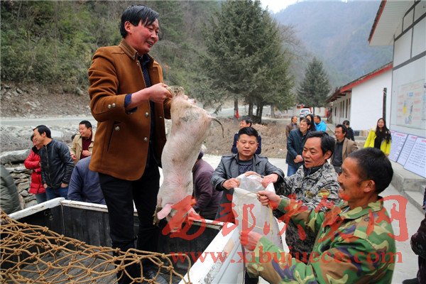 花石村的貧困戶正在領(lǐng)取免費豬仔