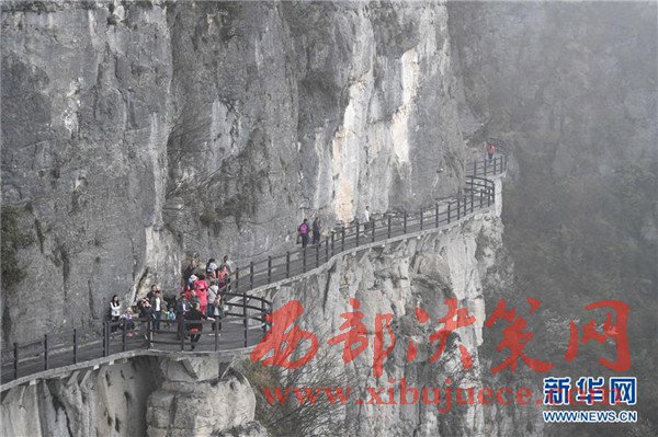 4月16日,游客在恩施大峽谷的絕壁棧道上游覽。恩施大峽谷位于湖北恩施土家族苗族自治州恩施市境內(nèi),景區(qū)內(nèi)有峽谷、地縫、絕壁、奇峰等地質(zhì)景觀,十分壯美。