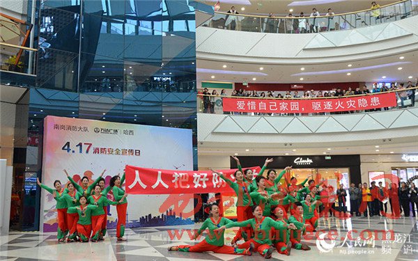 4月17日上午,在哈西萬(wàn)達(dá)廣場(chǎng)以小虎隊(duì)經(jīng)典歌曲《愛(ài)》為背景音樂(lè)的舞蹈拉開了哈爾濱市消防支隊(duì)南崗大隊(duì)2017年“4·17”消防宣傳日活動(dòng)的序幕。舞蹈的表演者全部為南崗大隊(duì)的消防官兵,歡快的樂(lè)曲和官兵們整齊的舞蹈動(dòng)作吸引了市民紛紛駐足觀看宣傳活動(dòng)。