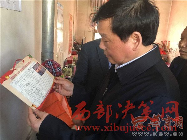 婁勤儉接著問他,家里的開銷主要在什么地方。得知是供孩子上學(xué)和給剛?cè)ナ?0多天的老母親治病后,又問:“有困難知道不知道找誰(shuí)?”葉偉鋒說(shuō):“找干部”。婁勤儉進(jìn)一步追問:“你家的幫扶干部是誰(shuí)?常來(lái)嗎?你能不能叫上名字?”葉偉鋒有些不好意思地說(shuō):“我只能記住姓啥。”他想了想找到貼在墻上的一張紙,是“永壽縣干部‘532’精準(zhǔn)幫扶萬(wàn)戶脫貧工作明白卡”,上面記錄著幫扶干部龐阿萌的電話。
