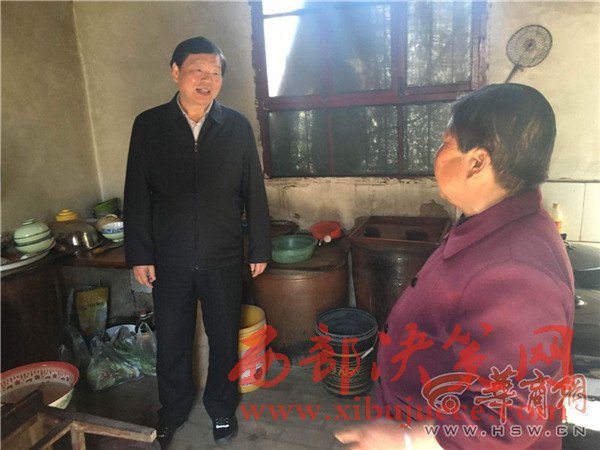 婁勤儉詳細(xì)了解了老人家庭成員、收入來(lái)源等,詢問了干部定點(diǎn)幫扶情況。隨后,他走進(jìn)屋里察看生活情況,在土坑邊彎下腰了解如何取暖,在廚房詢問吃水等情況。走出廚房后,他感嘆,“條件確實(shí)不太好,我們的工作還得加把勁啊!”