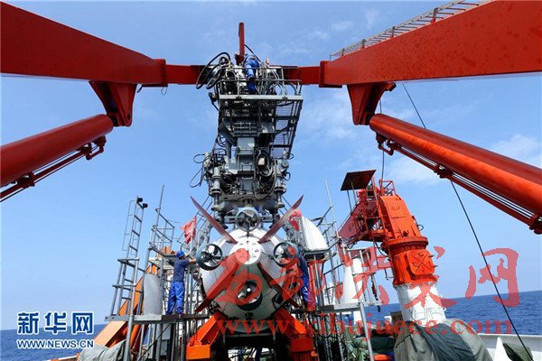 5月1日,科考隊(duì)員對(duì)“蛟龍”號(hào)載人潛水器和A型架進(jìn)行全面維護(hù)與檢修。