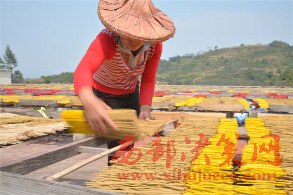 蒲氏后人蒲良宮演示傳統(tǒng)制香工藝。