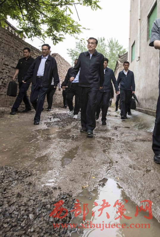 窗外一直下著雨。會前,李克強結(jié)束開封考察后,專程驅(qū)車一小時赴新鄉(xiāng)市封丘縣黃河灘區(qū),冒雨踩著泥濘小路實地察看黃河灘區(qū),并入戶探望灘區(qū)居民。