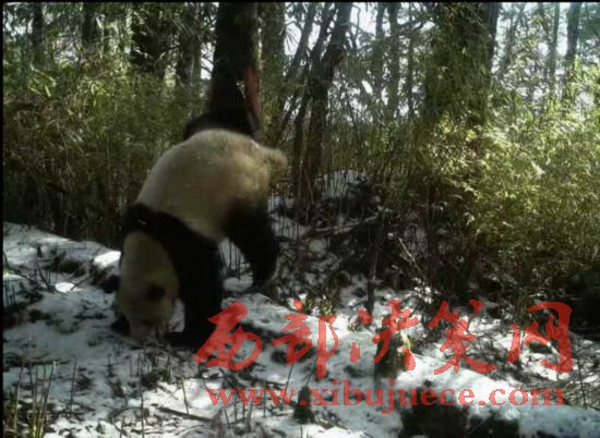 臥龍國(guó)家級(jí)自然保護(hù)區(qū)木江坪保護(hù)站紅外攝像機(jī)拍攝到的大熊貓?jiān)跇渖献鰳?biāo)記求偶