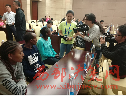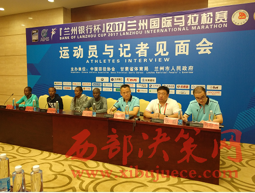 西部決策網(wǎng)-西部大開發(fā)訊(杜杰 帥華鋒)6月9日14時,2017蘭州國際馬拉松賽運(yùn)動員與記者見面會在甘肅大劇院新聞發(fā)布廳舉行。