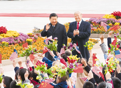 11月9日,國家主席習(xí)近平在北京人民大會堂東門外廣場舉行歡迎儀式,歡迎美利堅合眾國總統(tǒng)唐納德·特朗普對中國進(jìn)行國事訪問。(記者 李學(xué)仁 攝)