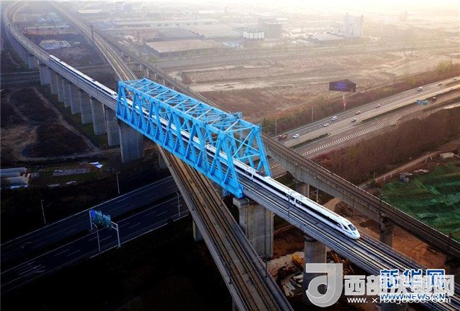 12月19日,一列高鐵從轉(zhuǎn)體成功后的商合杭高鐵跨鄭徐高鐵T構(gòu)梁下駛過。商合杭高鐵線路全長(zhǎng)794.55公里,設(shè)計(jì)時(shí)速350公里。