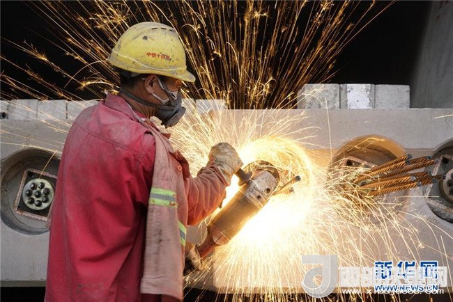 工人在中鐵上海工程局銀西高鐵甘寧段制梁場(chǎng)制作高鐵預(yù)制梁(4月17日攝)。銀西高鐵跨陜西、甘肅、寧夏三?。▍^(qū)),速度目標(biāo)為250公里每小時(shí),計(jì)劃2020年建成通車,屆時(shí)從西安到銀川將由現(xiàn)在的14個(gè)小時(shí)縮短至3小時(shí)左右。