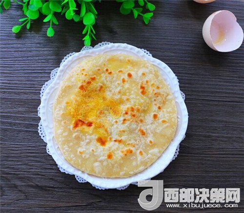 10.用筷子挑破一個(gè)小口,倒入蛋液,小火烙制。