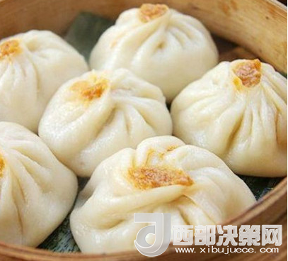5、點綴上蟹膏,做若干包子生坯;生坯擺放小籠內(nèi)冷水上籠;大火蒸10分鐘即可。