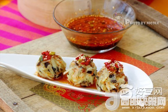 9.鍋中燒水,水開(kāi)后放入土豆丸子,大火蒸八分鐘;