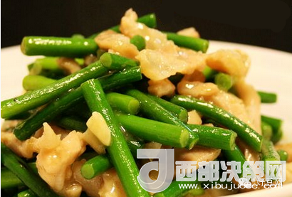 蒜薹300g、板筋肉250g、油、魚(yú)露、調(diào)味雞汁、生粉、砂糖。
