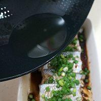 8. 根據(jù)口味撒上蒸魚(yú)豉油、蔥花。
