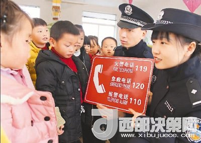 12月25日,浙江省臺(tái)州市公安局椒江分局下陳派出所民警深入轄區(qū)中小學(xué)校、幼兒園,開(kāi)展防拐騙、消防安全、交通安全等防范教育,通過(guò)講解安全小常識(shí)、發(fā)放防范宣傳資料等方面知識(shí),提高學(xué)生和幼兒園小朋友安全意識(shí)和自我防范能力。圖為民警在教幼兒園小朋友如何撥打緊急求助電話。何文斌 攝(人民視覺(jué))