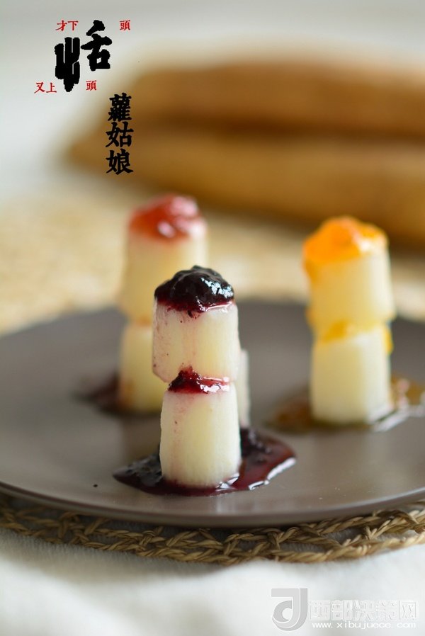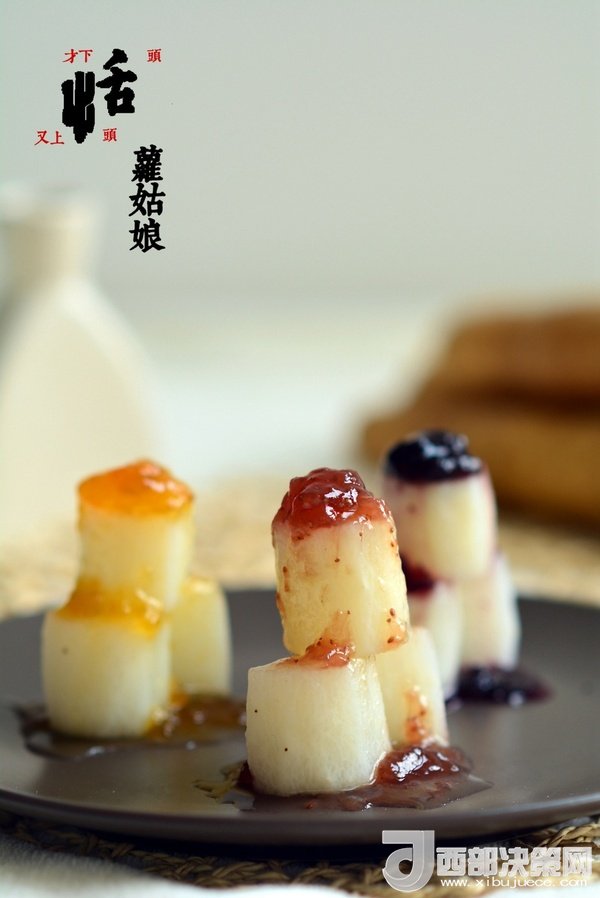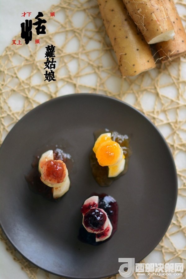 原料:山藥,草莓醬,藍(lán)莓醬,杏子醬。