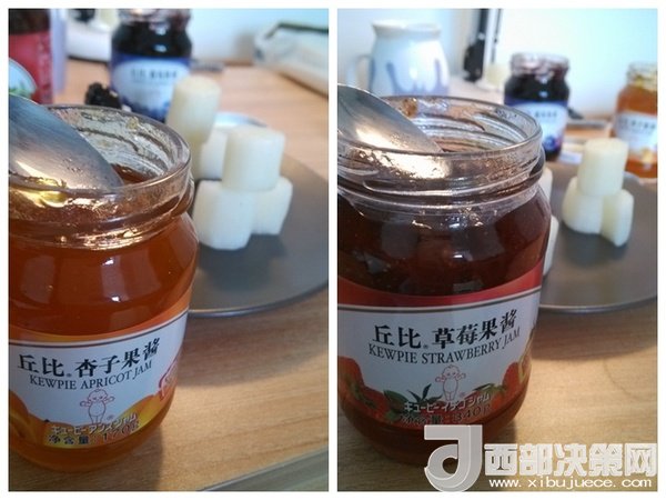 5、為了顏色漂亮,一個(gè)淋上杏子果醬;6、最后一個(gè)淋上草莓果醬即可。