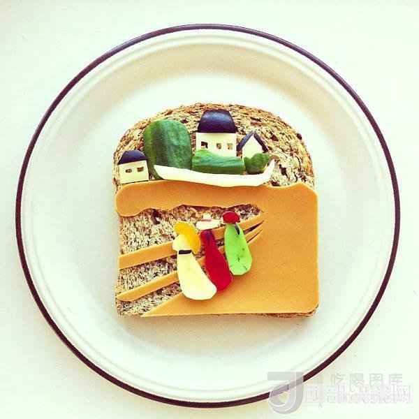 2012年,Ida Skivenes在網(wǎng)上看到一張用兩片土司擺出熊和狐貍造型的照片。受到啟發(fā)的她決定開始自己嘗試這種創(chuàng)意美食攝影。Skivenes用不同顏色的盤子作為背景,將各種食材擺放其上,組成一幅幅有趣畫面,然后用手機(jī)拍下來并分享在Instagram上。