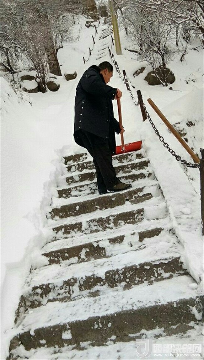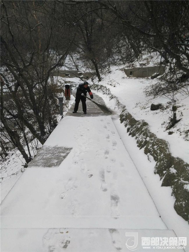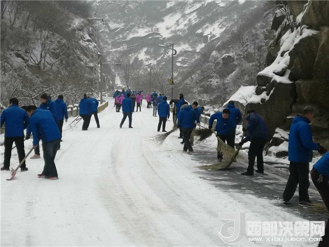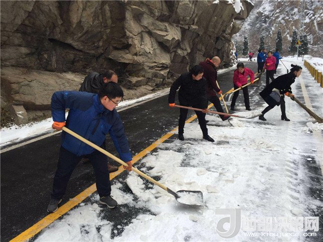 集團(tuán)重點組織清掃了游客中心、進(jìn)山公路及主峰區(qū)道路路面積雪,但由于氣溫驟降,路面結(jié)冰現(xiàn)象嚴(yán)重,員工們頂著刺骨的寒風(fēng),揮著鐵鍬、刮雪板、掃帚等工具清掃厚厚的積雪和冰塊,有效確保了主峰區(qū)路面的貫通。