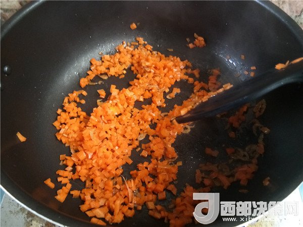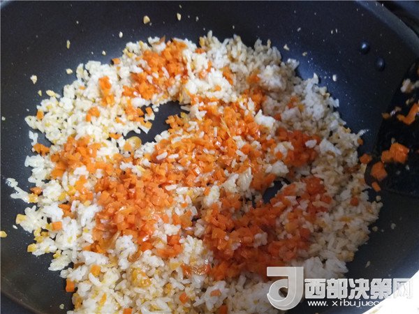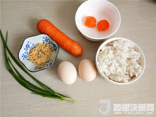 主料:米飯 1碗 咸蛋 2個(gè) 蝦皮 3克 胡蘿卜 80克 雞蛋 2個(gè)