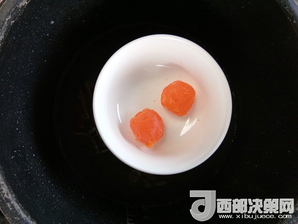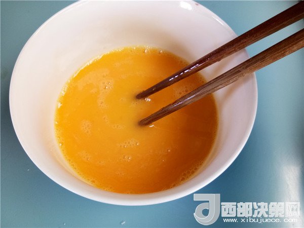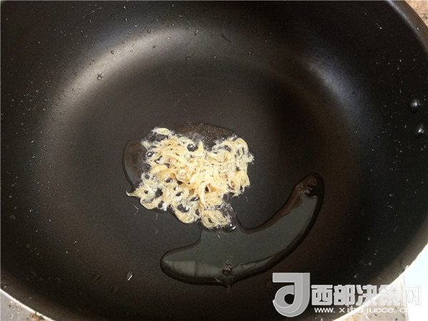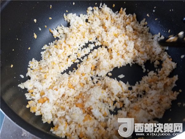 6.鍋內(nèi)放適量油,倒入咸蛋末。