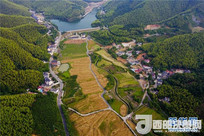俯瞰浙江省安吉縣上墅鄉(xiāng)劉家塘村的美麗鄉(xiāng)村景色(2017年6月8日攝)。安吉縣大力開展美麗鄉(xiāng)村建設,讓青山綠水成為當?shù)?ldquo;金名片”。記者 張鋮 攝