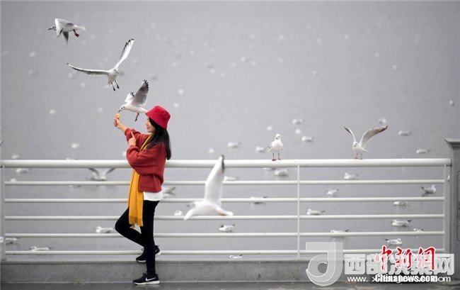 2月4日,一名女孩穿著厚厚的冬裝在昆明滇池邊給紅嘴鷗喂食。當(dāng)日,受較強冷空氣影響,“春城”昆明最低氣溫下降至-3℃。天氣雖然寒冷,卻抵擋不住市民和游客前來滇池觀賞、喂食越冬紅嘴鷗的熱情。中新社記者李進(jìn)紅攝