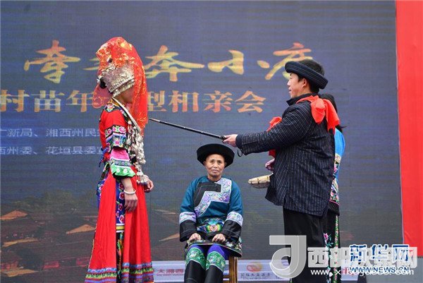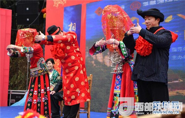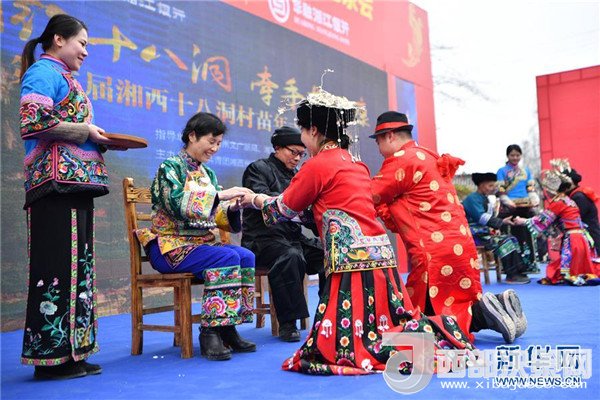 2月4日,兩對分別來自湘西和湘潭的新人特地來到湖南省湘西土家族苗族自治州花垣縣十八洞村體驗苗族婚禮。 (薛宇舸 攝)