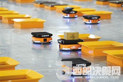 如今,智能機器人在快遞分揀領(lǐng)域的應(yīng)用大幅提升了快遞效率。圖為中國郵政速遞物流華中(武漢)陸運中心啟用機器人分揀郵件。