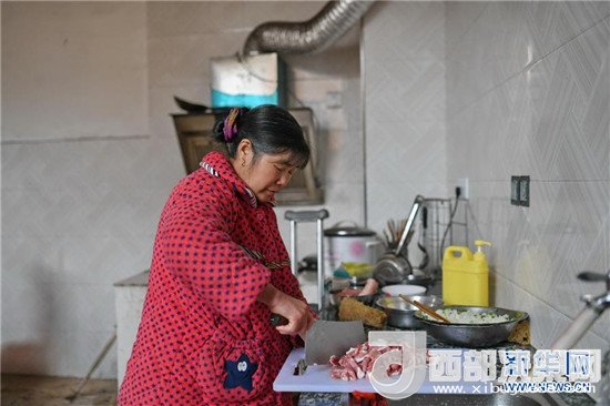 饒梅香在家中剁餃子餡準(zhǔn)備包餃子(2月14日攝)。