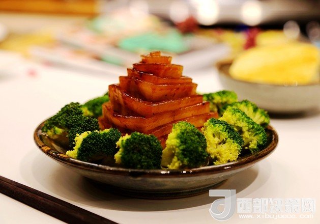 我依然簡(jiǎn)單化了流程,為了皮好看,可以將肉提前抹上老抽腌制,然后再煎,這樣做出來顏色更好看。