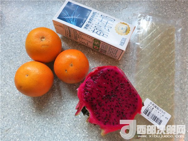 主料:火龍果 80克   橙汁 125克   牛奶 170克