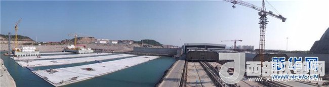港珠澳大橋島隧工程沉管預制廠全景(2014年12月9日攝,手機全景模式)。記者 黃國保 攝