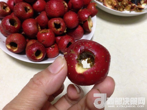 1、用筆桿去核,可以使做出來的山楂果脯保持完整漂亮的外形。