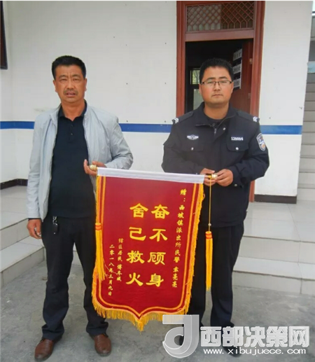 西部決策網(wǎng)——西部大開發(fā)訊(帥華鋒 通訊員 馬存福 韓燕玲)3月12日,甘肅兩當(dāng)縣西坡鎮(zhèn)居民傅先生專程前往西坡派出所,將一面書有“奮不顧身,舍己救火”的錦旗送到西坡派出所,以表達(dá)對民警袁亮亮的感激之情。