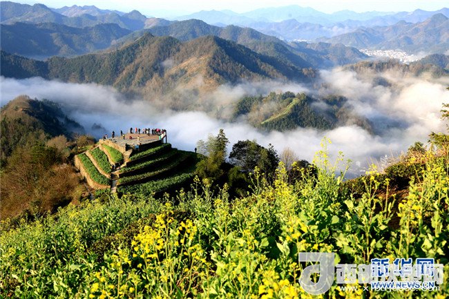當(dāng)日,陽(yáng)光燦爛,氣溫回升,安徽省黃山市歙縣境內(nèi)的石潭村、山水畫(huà)廓新安江、大洲源等地種植的油菜花陸續(xù)盛開(kāi),吸引著全國(guó)各地的游客到此觀光旅游。新華網(wǎng)發(fā)(潘成 攝)