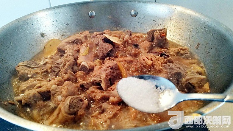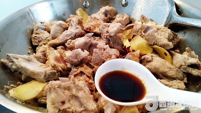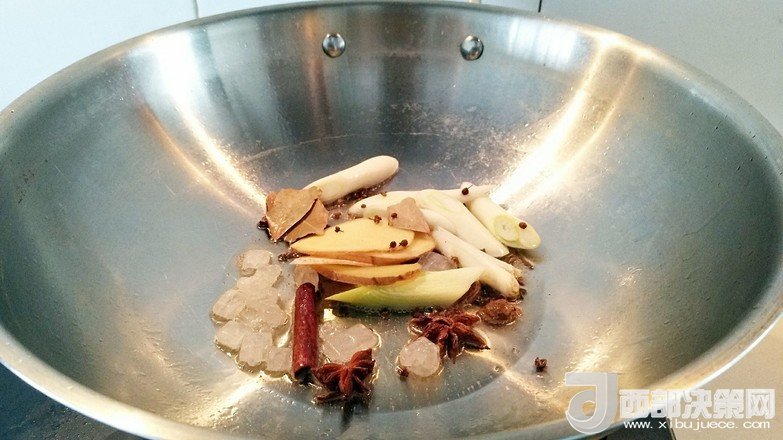輔料:花椒粒 適量   草果 兩個(gè)   玉米油 半勺   八角 兩個(gè)   生姜 一塊   大蔥 一根   生抽 一勺   老抽 幾滴   蠔油 1湯勺   鹽 三克   冰糖 20克