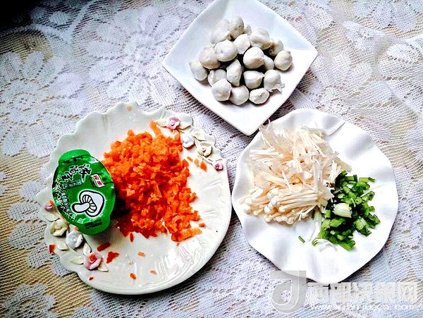 主料:胡蘿卜 半個(gè) 金針菇 60克 肉丸 50克 蔥 少許
