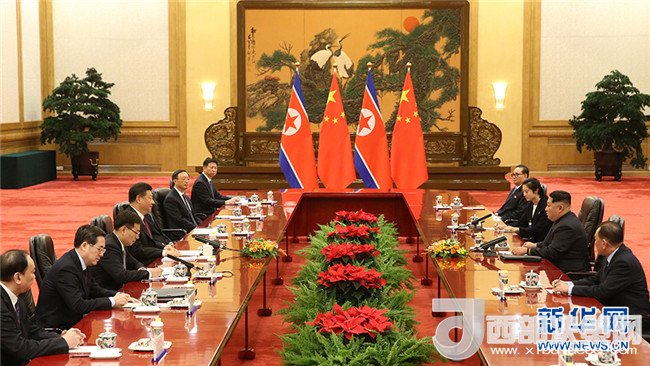 在會(huì)談中,習(xí)近平代表中共中央對(duì)金正恩首次訪問中國表示熱烈歡迎。習(xí)近平表示,你在中共十九大后電賀我再次當(dāng)選中共中央總書記、就任黨中央軍委主席,前些天又第一時(shí)間電賀我再次當(dāng)選國家主席、國家中央軍委主席,我對(duì)此表示感謝。此次來華訪問,時(shí)機(jī)特殊、意義重大,充分體現(xiàn)了委員長同志和朝黨中央對(duì)中朝兩黨兩國關(guān)系的高度重視,我們對(duì)此高度評(píng)價(jià)。