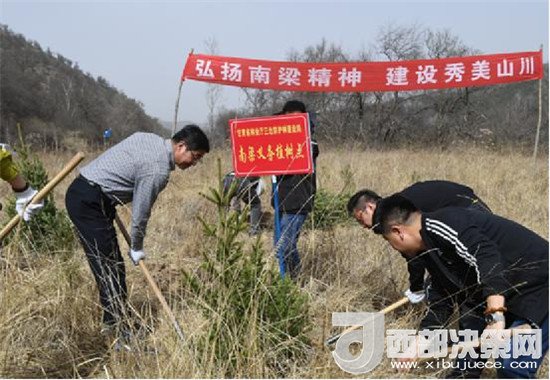 隨后,馬立鵬一行赴子午嶺生態(tài)林的密集區(qū)大鳳川林區(qū)開展“弘揚(yáng)南梁精神,建設(shè)秀美山川”義務(wù)植樹活動(dòng),并確立了甘肅省林業(yè)廳三北防護(hù)林建設(shè)局的“南梁義務(wù)植樹點(diǎn)”。通過親身開坑植樹,馬立鵬真切地感受到,森林的的確確是陸地生態(tài)系統(tǒng)的主體,林業(yè)更是一項(xiàng)惠民生、利千秋、保長遠(yuǎn)的重要公益事業(yè)和基礎(chǔ)產(chǎn)業(yè),承擔(dān)著生態(tài)建設(shè)和林產(chǎn)品供給的重要政治任務(wù),在穩(wěn)步助推全省脫貧攻堅(jiān)行動(dòng)的今天,努力做好林業(yè)生態(tài)建設(shè)工作意義重大、使命光榮、義不容辭。