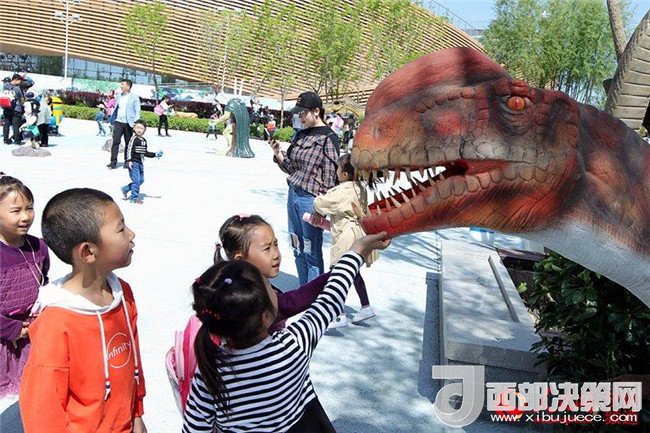 今天,神秘恐龍展在中國花卉博覽園啟幕?;ú﹫@里的大型侏羅紀恐龍展,仿若好萊塢電影里的侏羅世界,飛龍、霸王龍、三角龍……這些真實還原的仿真恐龍造型各異,吸引廣大銀川市民前來觀賞。(實習(xí)生 海東)