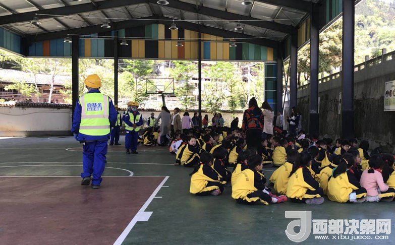 隨著一聲警報長鳴,雅安市蘆山縣雙石鎮(zhèn)中心小學的200余名學生在老師的帶領下,迅速、有序的從教學樓跑到操場,雙手抱頭蹲在操場的臨時安置區(qū)。校長楊成虎統(tǒng)計完人數(shù)后,立刻安排所有師生趕往校園深處的地震避難場。