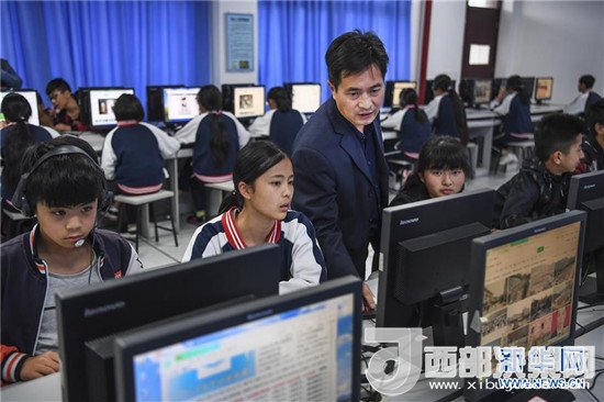 木魚(yú)中學(xué)教導(dǎo)主任張錫華(前左三)在給學(xué)生上信息技術(shù)課(4月24日攝)。